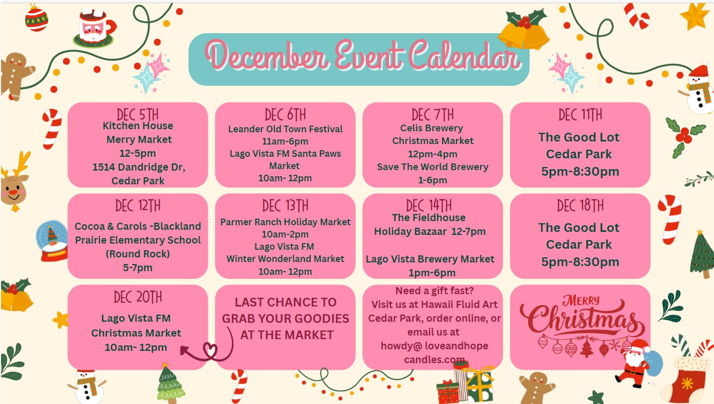 Love & Hope Candle Co. is a premium candle company located in Leander, TX. Our products are handmade in small batches using quality materials and sustainable practices that are kinder to our planet. We are proud to create products that are vegan, cruelty-free, clean burning, and phthalate-free.